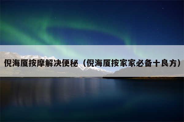 本篇文章给大家谈谈倪海厦按摩解决便秘,以及倪海厦按家家必备十良方对应的知识点,希望对各位有所帮助,不要忘了收藏本站喔。